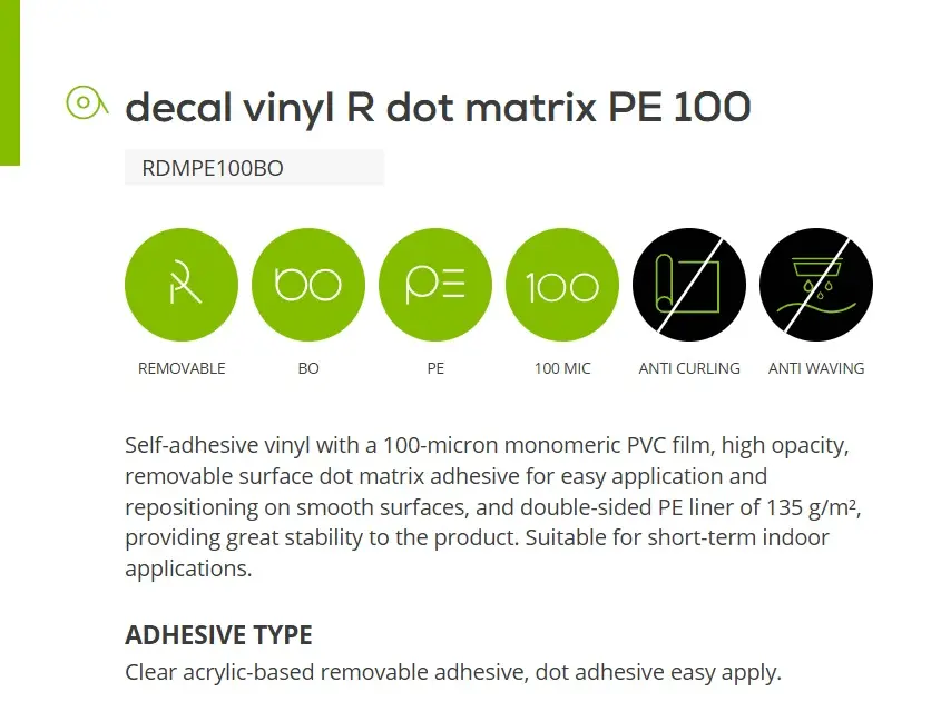 Decal Dot Matrix 4 Mil. Removable 54" x 50m